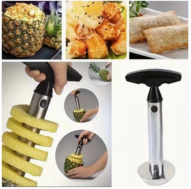 Transform your kitchen experience with this ergonomically designed Stainless Steel Pineapple Corer and Slicer. Perfect for fruit lovers, this multifunctional kitchen gadget makes it effortless to remove cores, slice pineapples, strawberries, and other fruits. Its durable stainless steel construction ensures long-lasting performance, while the comfortable handle gives you complete control and precision. Ideal for home use, parties, or as a gift for loved ones, this tool makes fruit preparation faster, cleaner, and more enjoyable.